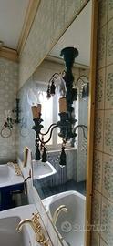 Vendo elegante specchiera da bagno in stile vintage, con ampia superficie riflettente e cornice in ottone dorato. Le applique sono escluse.