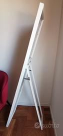 specchio da camera con perfilo bianco in legno, da appendere a parete o con piedistallo.