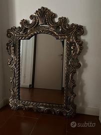 Specchio marocchino artigianale con cornice dorata barocca, intagliata a mano. Elegante, in ottime condizioni.