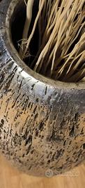 Specchio e vaso alto foglia argento con venature nere. Lo specchio è lungo 100 cm e alto 63 cm. Il vaso è alto cm 85 ed ha il diametro di cm 35