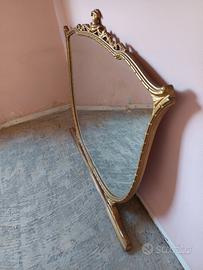 Grande specchio da parete anni cinquanta, con cornice dorata. Era posizionato sopra un comò. Misure larghezza 130 cm., altezza 114 cm. Vendita e ritiro in loco.