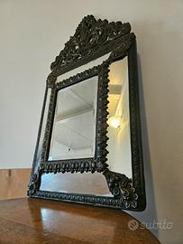 Specchio da parete in stile Napoleone III con lavorazione "Repoussé" in ottone brunito in ottime condizioni per info contattatemi