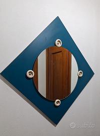 Specchio vintage, originale fine anni '60. E' rotondo di diametro cm.46 su una base quadrata in laminato blu di cm.63x63. Peso kg.7,6. In buono stato, integro, appeso per anni alla parete. Per eventuale spedizione da considerare volume e peso + imballo. No locker