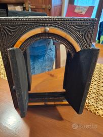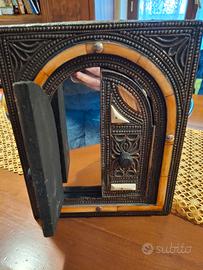 specchio decorativo marocchino da parete, caratterizzato da una struttura a forma di finestra con ante apribili.