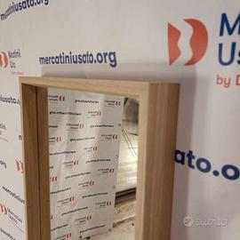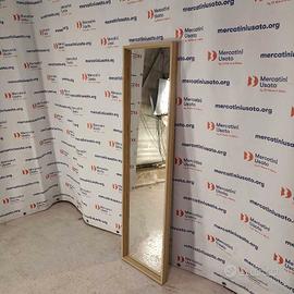 Specchio da parete verticale. Struttura in legno con cornice in legno chiaro. In