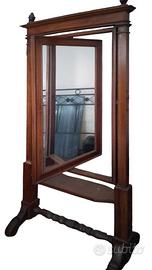 Articolo da antiquariato: antico specchio da sarta in legno, orientabile a 180° su due assi. Altezza circa 2 metri.