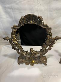 Specchio da tavolo/comodino ottone/bronzo del 900.