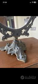 Elegante specchio da tavolo con una cornice in bronzo finemente lavorata. - Cornice in bronzo con dettagli decorativi. - Forma ovale dello specchio.