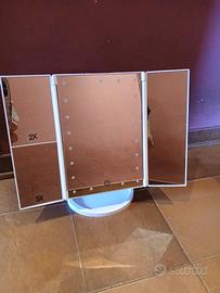 Specchio dotato di 21 luci, per truccarsi in comodità stando sedute al tavolo, spostandolo in varie direzioni