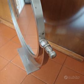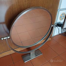 Specchio da tavolo/vanity rotante in acciaio satinato - Design Moderno. Dam specchio con piccolo difetto 40 cm.