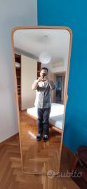Vendo bellissimo specchio da terra IKEA modello IKORNNES, un pezzo iconico dal design scandinavo, perfetto per chi cerca uno stile pulito, naturale e funzionale. Non è il solito specchio: la struttura è in impiallacciatura di frassino con angoli arrotondati, ideale per dare luce e calore alla camera da letto o all'ingresso. Il suo "segreto"? Sul retro nasconde una pratica barra appendiabiti! È la soluzione definitiva per chi odia vedere i vestiti accumulati sulla sedia: puoi appenderci l'outfit per il giorno dopo, sciarpe o borse, tenendo tutto in ordine e nascosto dietro lo specchio. Altezza: 167 cm Larghezza: 52 cm Profondità alla base: 40 cm Ritiro: A carico dell’acquirente presso San Giusto, Pisa. Trasporto: Lo specchio è solido ma leggero da trasportare in due persone. Entra comodamente in auto abbattendo i sedili posteriori.
