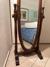 Vendo elegante specchio da terra con struttura in legno scuro e forma ovale.
