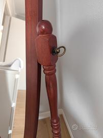 Specchio da terra di forma ovale con base sostenuta da due gambe. Ai lati sono presenti pratiche manopole per inclinare lo specchio e regolare l'angolazione.