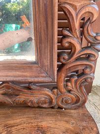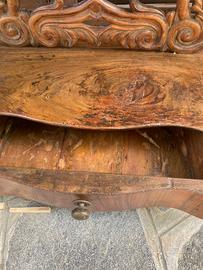 Meravigliosa specchiera da toeletta con specchio basculante e cassetto, psiche da tavolo, in legno di noce.