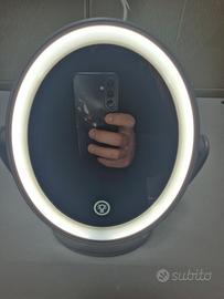 Aesfee mod. AF-802 - Specchio da trucco con Luci LED misure 12,6 x 15,6 cm, ingrandimento 1x/7x, ruotabile a 360° e interruttore Touch con 3 intensità di illuminazione.