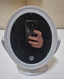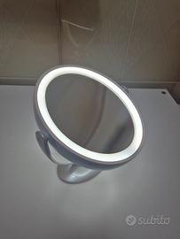 Aesfee mod. AF-802 - Specchio da trucco con Luci LED misure 12,6 x 15,6 cm, ingrandimento 1x/7x, ruotabile a 360° e interruttore Touch con 3 intensità di illuminazione.