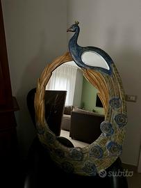 • Forma: Specchio ovale incastonato in cornice sagomata a pavone.