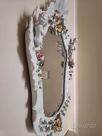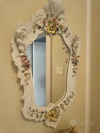 Specchio decorativo con relativa mensola in ceramica Vecchia Lodi. Specchio 70 x 45 x 10 , mensola 41 x 30 x20