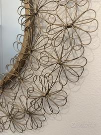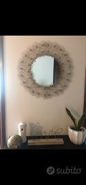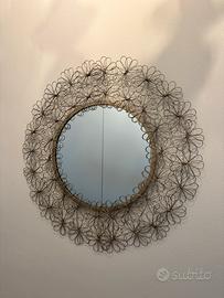 Bellissimo specchio decorativo con cornice in metallo dorato lavorato a mano con motivo floreale. Ideale per arredare soggiorno, ingresso o camera da letto, aggiungendo un tocco elegante e originale. In ottime condizioni, senza difetti evidenti. Perfetto per ambienti in stile moderno, boho o vintage. Dimensioni: (60 cm) Ritiro a mano Lodi Prezzo: € 30
