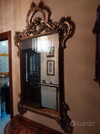 vendo per trasloco uno specchio riccamente decorato con cornice il legno verniciata oro.