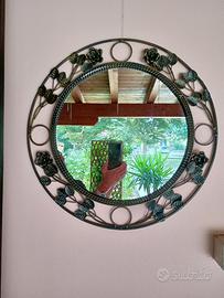 specchio decorato in Ferro Brunito dalle dimensioni totale cinquantatre centimetri