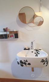 Vendo specchio, per bagno o toeletta, marca Agape modello Spin. Disegnato dalla Benedini Associati nel 1998. Orientabile e regolabile in altezza, con due specchi rotondi, uno ingranditore, in multistrato di betulla con finitura rovere naturale. Misura cm. 47 X 44. Come nuovo, perfetto da collezione.