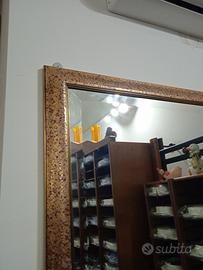 Vendo specchio di grandi dimensioni, con cornice in Radica e vetro molato. Molto bello per case studi uffici ecc. Altezza 2 metri. Larghezza 110 Cm. Condizioni NUOVO.