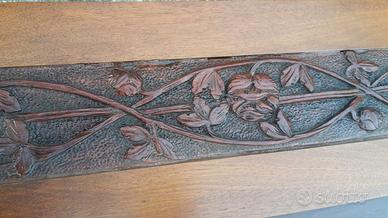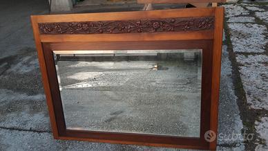 Specchio diamantato con supporto in noce nazionale chiara e scura risalente ai primi anni 30, alto cm. 115 e largo 89,5 cm. con basso rilievo scolpito, in perfette condizioni.