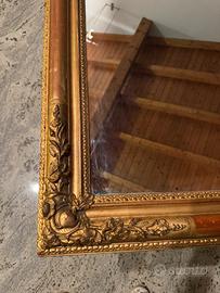 Vendo splendido specchio antico di grandi dimensioni con cornice in legno finemente intagliata e dorata.