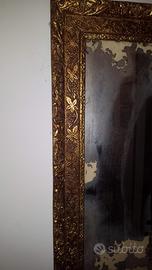 Vendo specchio dorato in foglio d'argento vintage ad € 100. la misura esterna della cornice é 71x56 cm mentre lo specchio interno 57x42 cm. Astenersi perditempo e collezionisti di foto. Annuncio sempre valido finché visibile. Visto la fragilità del pezzo non spedisco.