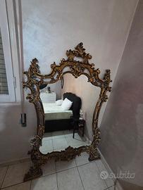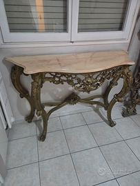 Vendo splendida consolle in stile barocco/rococò con specchio abbinato, perfetta per chi vuole dare un tocco di lusso e personalità alla propria casa. Caratteristiche principali: Struttura finemente lavorata con intagli ricchi e dettagli dorati Piano in marmo sagomato, elegante e resistente Specchio importante con cornice coordinata, ideale per ampliare gli spazi e dare luminosità Design scenografico, perfetto per ingresso, salotto o ambiente raffinato il prezzo si riferisce cad uno