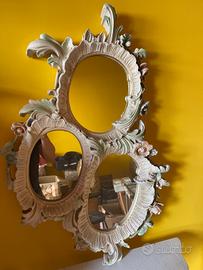 consolle legno e stucco dipinto a mano con specchio e piano in marmo. meno di un orologio apple e dura per sempre.