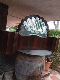 Specchio a ventaglio imcorniciato ds legno con mscchina per cucire vintage
