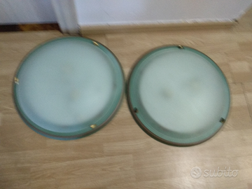 n 2 grandi plafoniere da soffitto x salone o camere legno e vetro cupola satinato tutti completi dio rtalampacome nuovi funzionanti posso vendere anche pezzo singolo