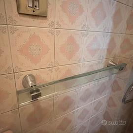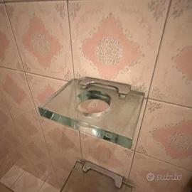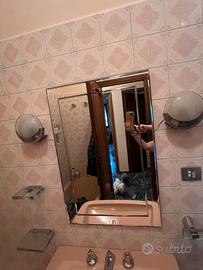 Elementi arredo bagno originali anni ‘70. Specchio (81 x 53 cm) più due Appliques più porta asciugamani più bicchiere spazzolino più portasapone in cristallo. Roma - Zona Colli Albani