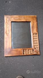 Specchiera etnica con cornice in legno intarsiato con finiture in corda misure 50 x 40 circa, perfetto stato. ritiro a mano.