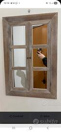Vendo specchio finestra da parete con cornice in legno, a forma di finestra con 2 ante apribili, nuovo mai usato o attaccato a muro. Vendo zona Aranova su Aurelia RM No spedizione