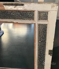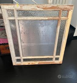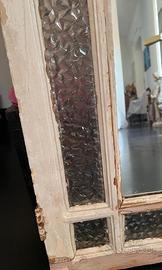 Da una finestra in legno antica è stato ricavato uno specchio in stile shubby chic . La parte centrale specchiata è stata messa per trasformare la finestra in uno specchio . Le parti laterali in vetro lavorato sono originali. Il lucchetto per chiudere è ancora presente. Misure 80x86 cm. Spessore 4 cm. Ci sono 2 ganci in metallo sul retro per appenderlo al muro. L’oggetto è a Firenze zona porta al Prato. Ritiro di persona dell’aquirente. Non spedisco, mi spiace. Per questo metto un prezzo basso.