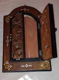 'simpaticissimo' Specchio Finestra VINTAGE in legno scuro stile etnico da appendere alla parete, misura: 37x24 in ottime condizioni come da foto...
