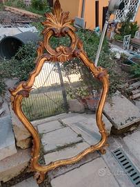 Antico specchio medio grande, color oro ramato,