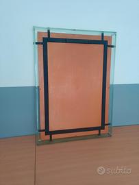 Specchio galleggiante in cristallo usato anni'70, sostegni in ottone nichelato, cornice in lastre di cristallo molate. Vintage ideale per appartamento o locale in stile o ufficio o bagno, collezionismo o arredamento in stile, non ha illuminazione. Misure: altezza 81 cm, larghezza 59 cm, spessore 5,8 cm.