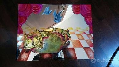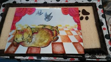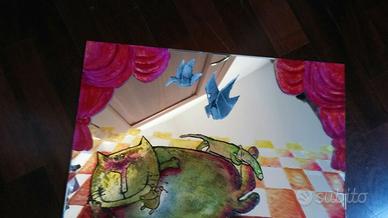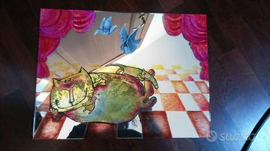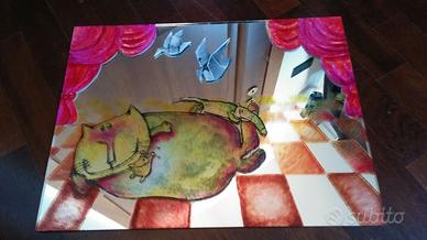 Originale specchio dipinto a mano gatto ciccione e topolini dipinto a mano Unico!! misure 40 cm x 30 cm