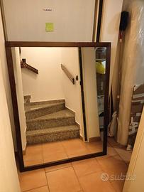 Vendo specchio di grandi dimensioni con cornice in legno scuro, misure 113 x 145 cm. Ideale per ingresso, camera o negozio. Buone condizioni generali, come da foto.