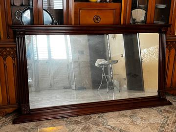 Vendo splendido e imponente specchio con cornice in legno massello, ideale per aggiungere profondità, luce ed eleganza a qualsiasi ambiente della casa: ingresso, salotto, camera da letto o corridoio. Perfetto anche per attività commerciali come negozi o saloni di bellezza.