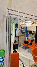 Bellissimo specchio grande con mensola e poltrona con pompa pneumatica adatta a Parrucchieri come postazione di lavoro, si fissa semplicemente a parete con 3 tasselli, marchi prestigiosi nel settore, lo specchio è brendizzato Diva e la poltrona Ceriotti, valore commerciale oltre 1.000,00 euro svendo entrambi a solo 390,00 euro vero affare!!!
