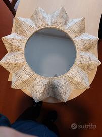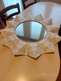 Caratteristiche: Cornice: Rame anticato con design a forma di sole e dettagli intricati Diametro della Cornice: 72 cm Diametro dello Specchio: 37 cm