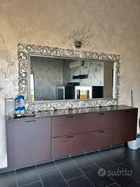 Vendo splendido specchio di grandi dimensioni, lunghezza 2,10 metri, con cornice decorativa stile barocco color argento.