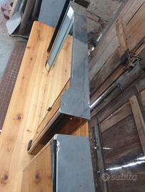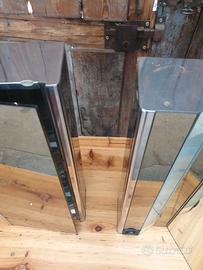 Specchio in acciaio per bagno . Lo specchio è composto da 3 moduli separati . Buona qualità . All'interno vi sono posizionati dei ripiani . Dotato di illuminazione laterale . Lo specchio si può posizionare con o senza moduli laterali . Dimensione totale con i moduli : 154 x 13 x 65 altezza .