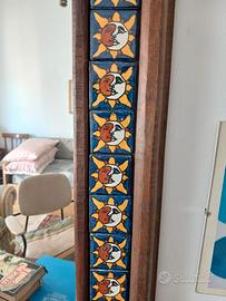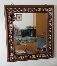 Specchio in legno Nepal,con piastrelle in ceramica
