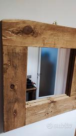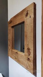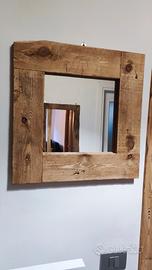 Specchio in legno casa di montagna, arredamento rustico. Fatto a mano con legno di recupero. Dimensioni 48x48 Ritiro o consegna zona Cuneo
